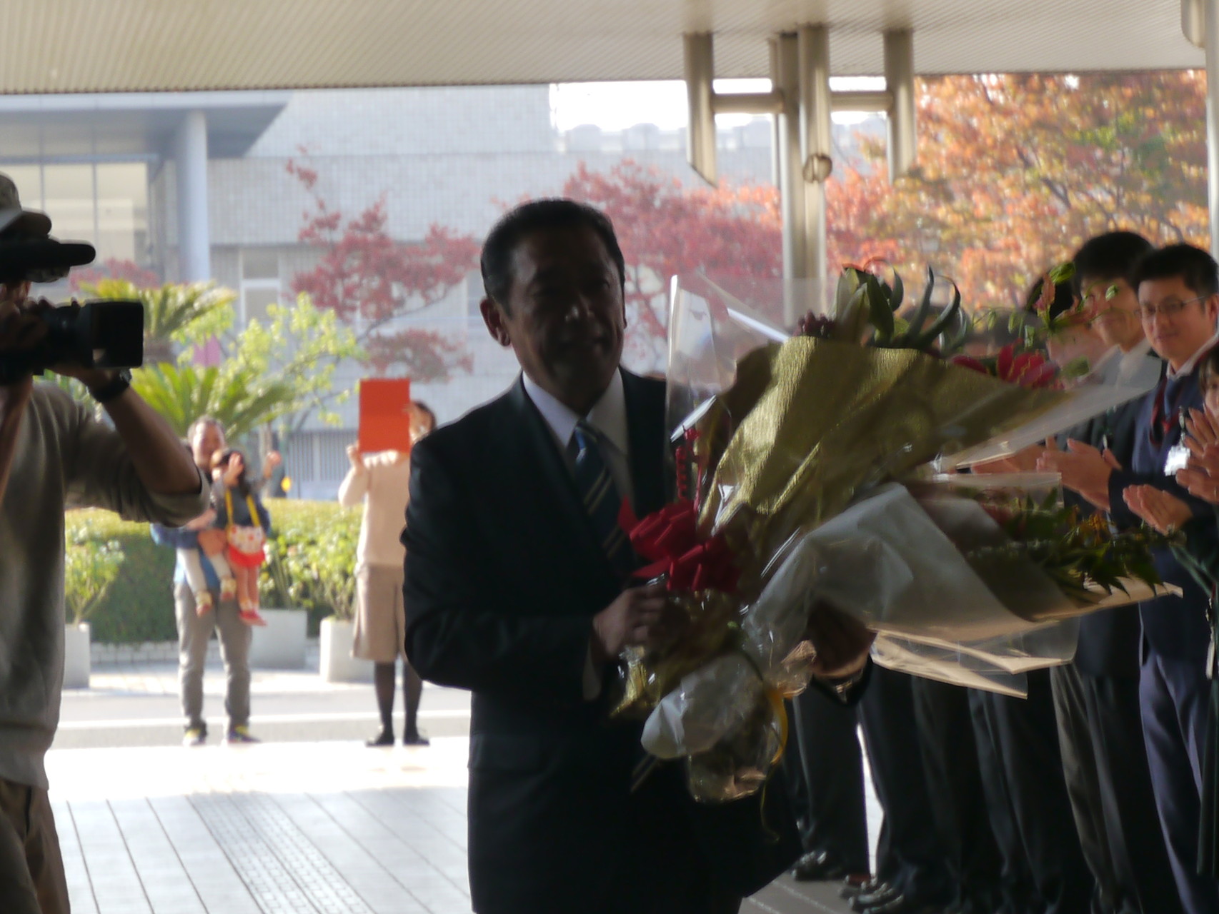 今日は因辰美町長が初めて役場に登庁する日でした。本当はインタビューをしたかったのですが、こちらは後でいつでもチャンスがあると思うので、邪魔をしないように広報係やマスコミが写真を撮るのに交じってシャッターを押し、後はそそくさと退場しました。今後の町政運営についての思いは別のところで尋ねましょう。まずは町長ご就任おめでとうございます。 町長としてのまず第一歩は今後10年間の総合計画と公約との整合でしょうか。10年間で市制を目指すというのが前町長の考えでしたから。5年で可能にするという辰美町長の思いはどこまで可能でしょうか? 10万人規模の自治体となって優良企業を誘致し福祉の財源を確保する、というのが公約の中心ですが、相手のあることですし、そう簡単には進まないでしょう。 ただ私はビジョンを掲げ、実施に向けて多くの町民と議論を重ねるその過程が、その緊張感がきっとこの町を良くすると信じています。今のままではただのぬるま湯につかっているだけで、何もなされないまま人口だけが増え、雑多な町になるのみですから。