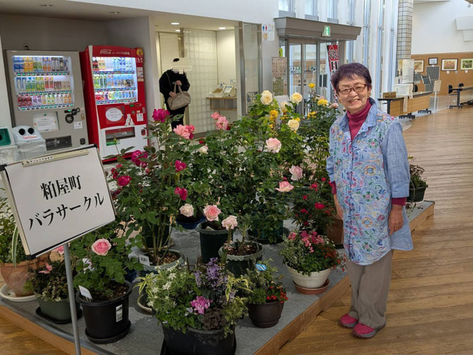 文化祭会場の玄関フロアーにはやっぱり鉢バラの展示が必要だと痛感。来場者の方も通り過ぎに顔を近づけ、バラの香りを楽しまれていました。